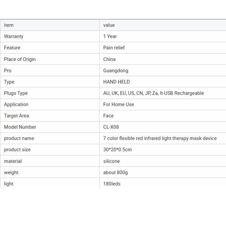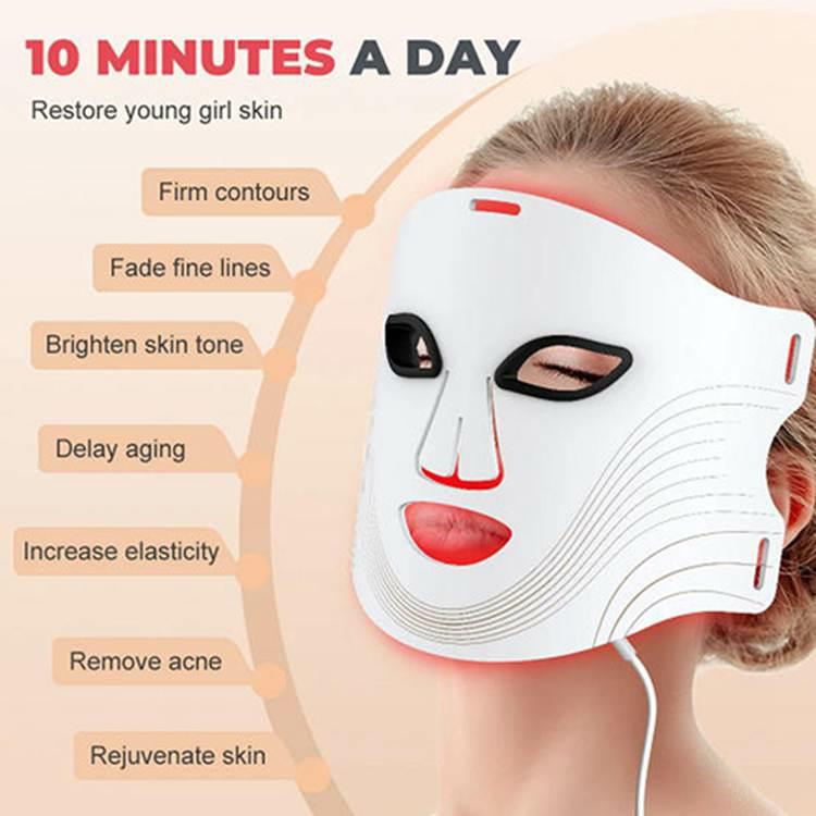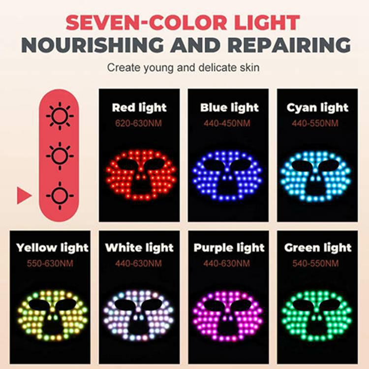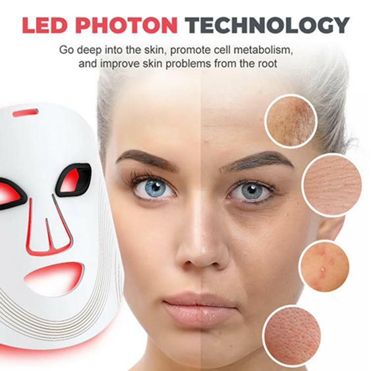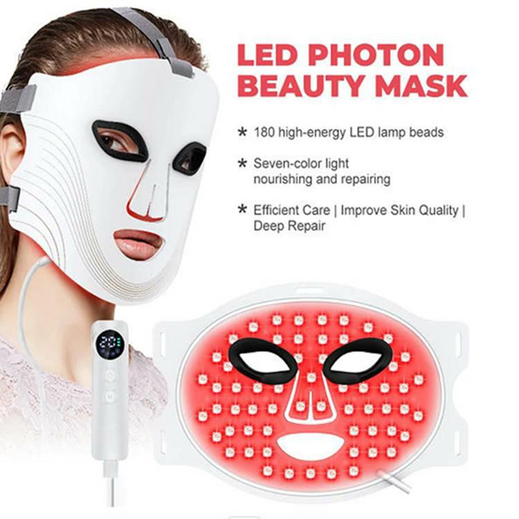 DettaRöd LED -ljusterapi ansiktsmaskär designad i 7 färger. Du kan ändra färgen enligt dina egna behov som denna produkt är utformad med 180 lysdioder och kommer med en fjärrkontroll. Efter laddning kan du ta den till vilken plats du vill använda, vilket är mycket bekvämt.